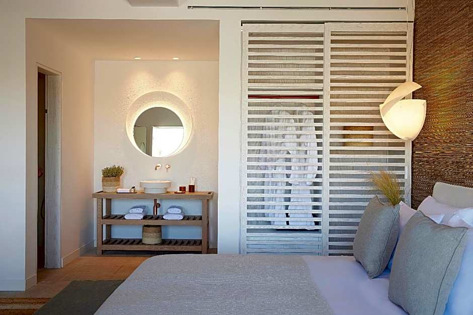 Located in Ornos on Mykonos, this five-star adults-only retreat blends luxury with island charm. The seasonal outdoor pool provides a sun-soaked gathering spot for adults, and some accommodations offer a private pool for those seeking extra privacy. For pampering, a spa/wellness package is on offer, along with a spa tub and the option to book massages for an additional fee, perfect for recharging after a day by the sea.